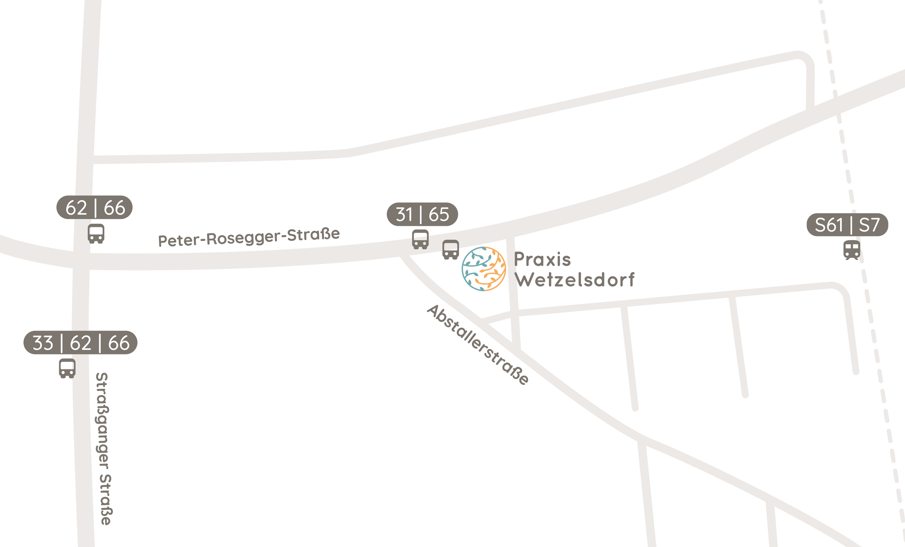 - Bahnhaltestelle Graz-Wetzelsdorf (S61 und S7) in unmittelbarer Nähe.